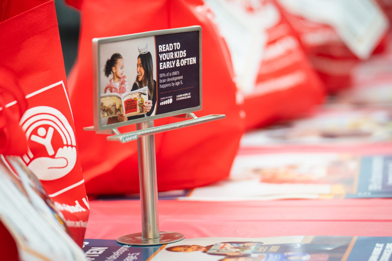 The strategy extended beyond instruction into community culture. Public-facing literacy efforts, including posters and billboards featuring local educators, families and students, reinforced reading as a shared community value. By making literacy visible across the city, the partnership helped normalize shared responsibility for early learning and strengthen public ownership of outcomes.