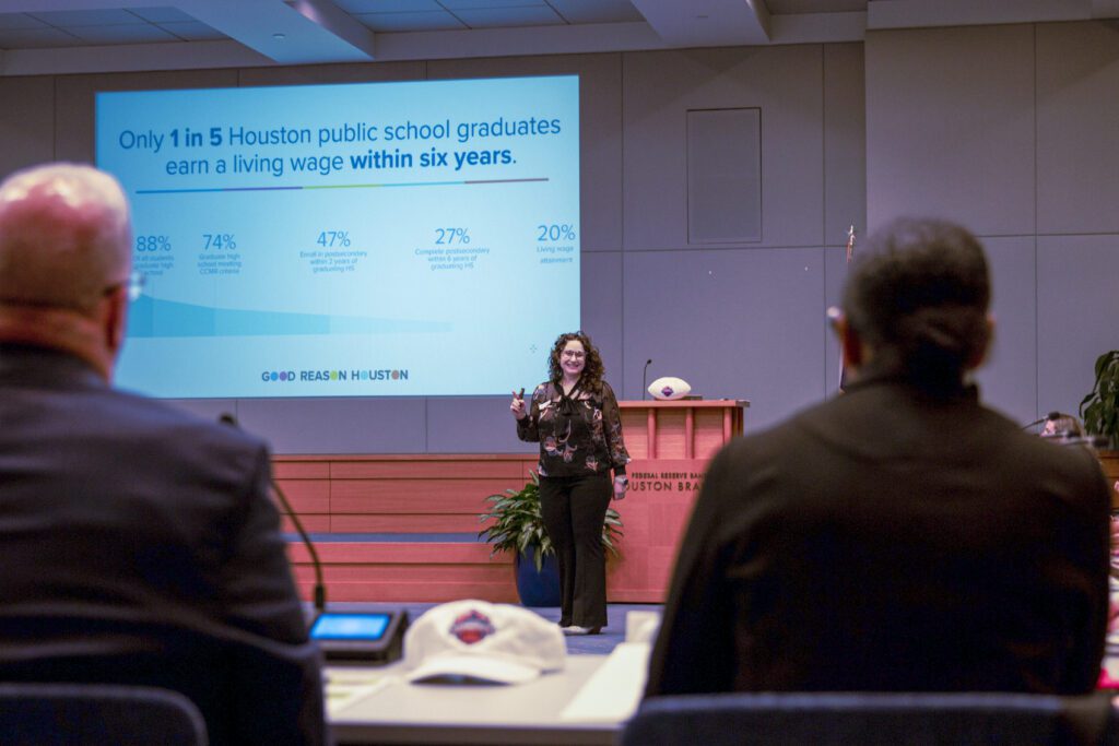 “It takes districts, higher education, employers and community partners all working from the same definition of success. That’s exactly what we’re doing at Good Reason Houston: bringing those decision-makers together so no student falls through the cracks between systems,” Courtney said.