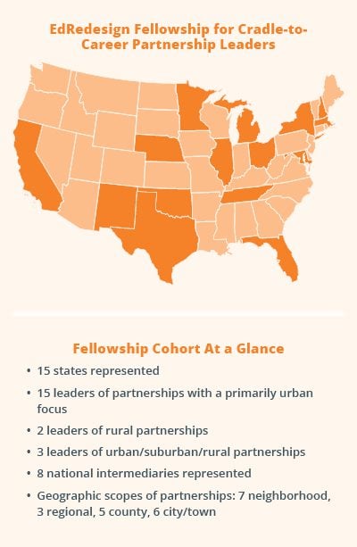 The fellowship addresses a critical need in the field: preparing leaders to guide complex cross-sector efforts while centering community expertise and lived experience. The inaugural cohort includes 21 fellows from 15 states, representing urban, rural and suburban communities as well as neighborhood, county and regional partnerships. Fellows bring diverse perspectives from national models such as Promise Neighborhoods, Full-Service Community Schools, Communities In Schools, Blue Meridian Partners’ Place Matters initiative and several StriveTogether Cradle to Career Network communities.