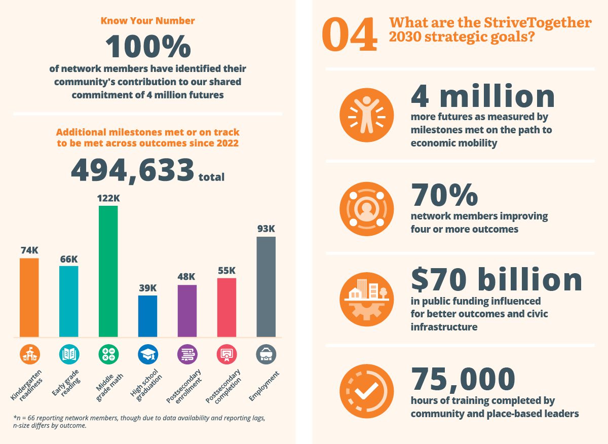 Two years ago, StriveTogether set a bold goal: to put 4 million more young people on a path to economic mobility by 2030. In 2025, the Cradle to Career Network showed what’s possible when we use data effectively, center the priorities of communities and collaborate to make sure we’re putting the best strategies to work for kids and families.