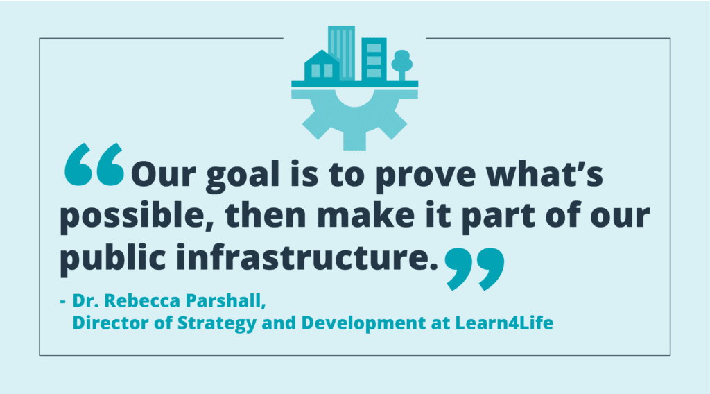 “The network effects are real,” says Parshall. “We’ve learned so much from other communities about how to scale what works and how to stay focused on what’s measurable and sustainable.” This shared learning culture has shaped key elements of Learn4Life’s approach, from identifying local bright spots to strengthening continuous improvement systems that keep partners focused on results.