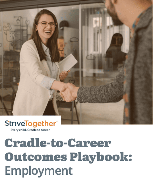 The StriveTogether Outcomes Playbook: Employment is a comprehensive guide to the latest research and best practices for this outcome, made possible by support from the Gates Foundation. Communities can use the playbook to identify local needs, prioritize areas for collective action and improve strategies.